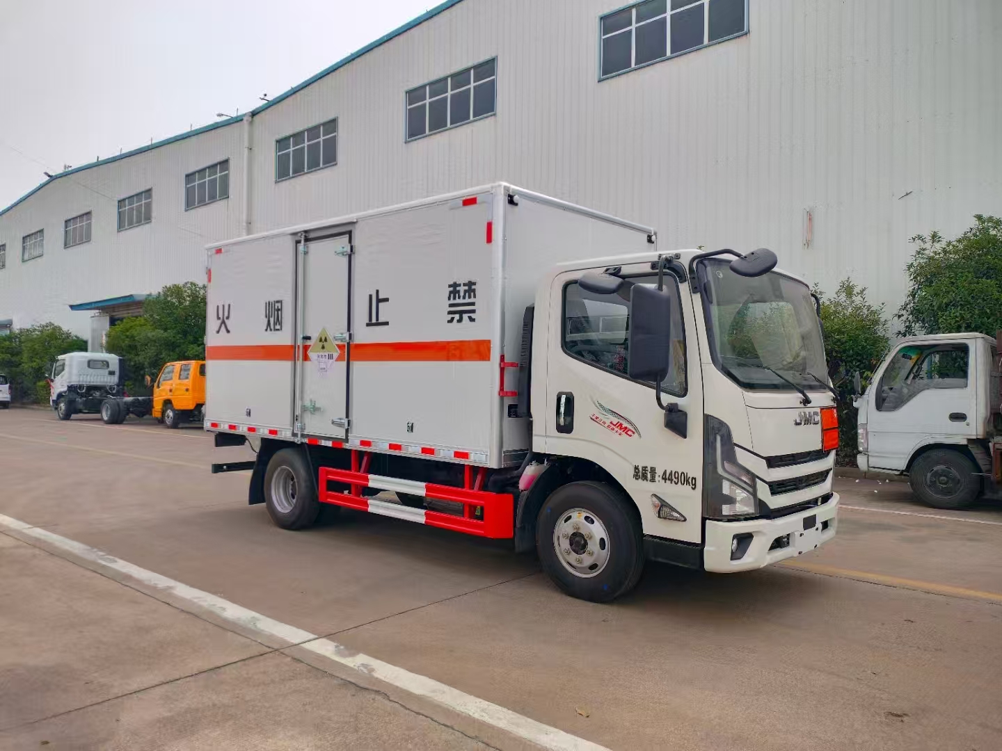 江鈴凱運(yùn)國(guó)六放射性危險(xiǎn)品車選用的是江鈴凱運(yùn)1890mm底盤,3360mm軸距,麥格納格特拉克5檔變速箱,五十鈴130馬力,斷氣剎,700輪胎,100L油箱,電源總開關(guān),限速80,排氣管前置、ABS、LDW、FCW。整車尺寸:5999×2230×3150/3050/2850mm,廂體尺寸:4150×2100×2100/2000/1800mm。在同類車型中,該款車型駕駛室寬,帶氣剎制動(dòng)性好,可安全行駛。嚴(yán)格按照公告尺寸制作,底板采用3MM花紋板,外板采用1mm厚冷軋板有一次性成型的百葉窗,內(nèi)飾為導(dǎo)電性能良好的鋁板有透氣孔,內(nèi)襯為矩形管骨架牢靠穩(wěn)定,內(nèi)部填充為透氣防潮阻燃的擠塑板,四種材料經(jīng)現(xiàn)代工藝復(fù)合而成,廂體外部上下鋁合金型材包邊,底板和車廂前下部鋪橡膠皮,后門雙開,右側(cè)前部單開門,車輛外部有靜電帶、滅火器、防火罩,車廂內(nèi)安裝煙霧報(bào)警器和門防盜報(bào)警器,嚴(yán)格按照國(guó)家危險(xiǎn)品相關(guān)法規(guī)粘貼