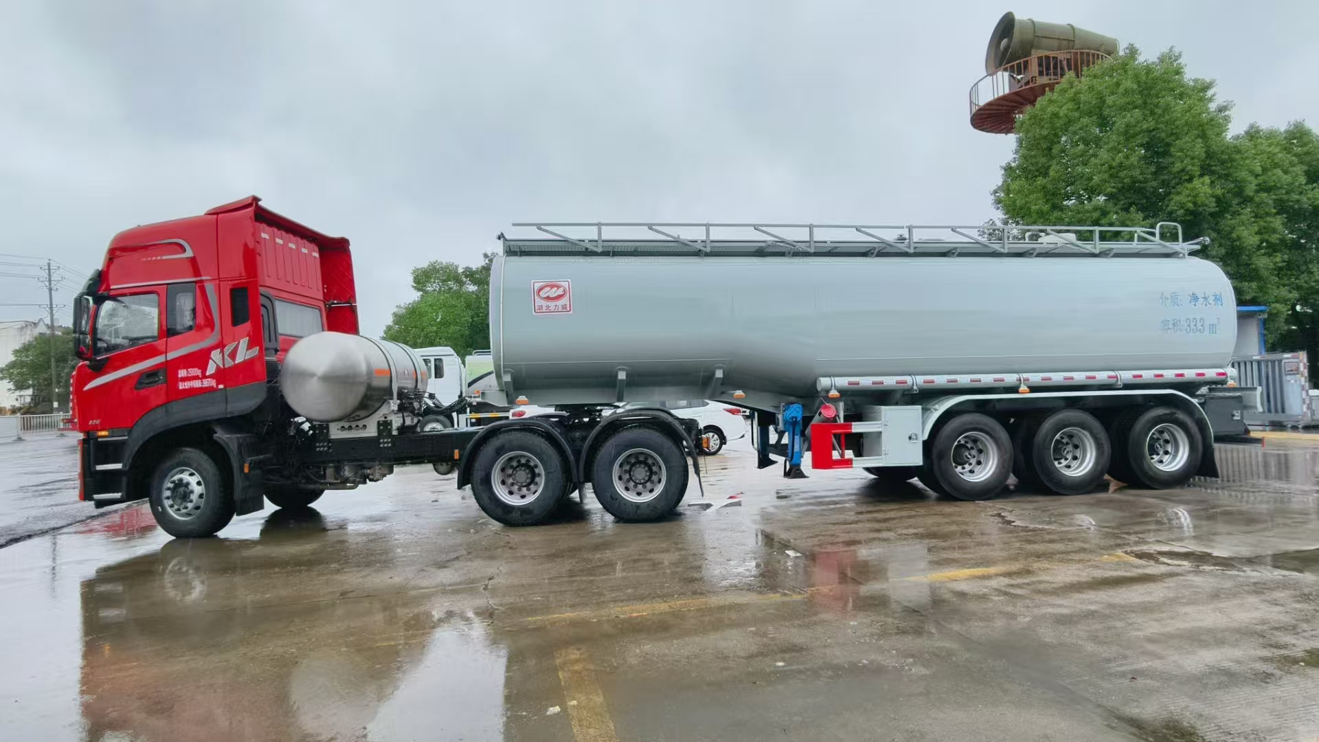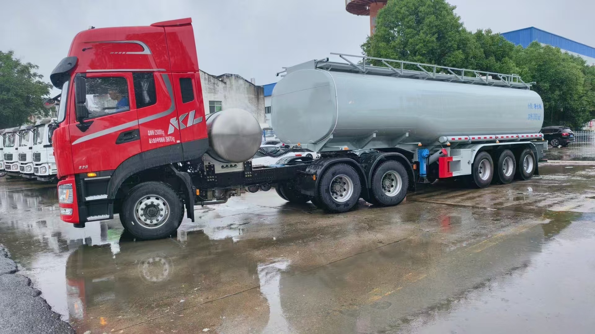 31方供液半掛車發(fā)往四川樂山,罐體采用4.5毫米鋼板制作,內襯16毫米厚聚乙烯,三道鋼襯塑防浪板,三個清洗罐口。罐體采用的是國標板材,優(yōu)質鋼材。縱梁采用焊接形式,強度加倍更扎實。帶專用自動裝卸裝置,方便安全。罐體全部采用的是全自動無縫焊接,水壓封頭一次成型。罐體通過酸洗、紅色防銹底漆,掛灰打磨十年不銹不漏更耐用。