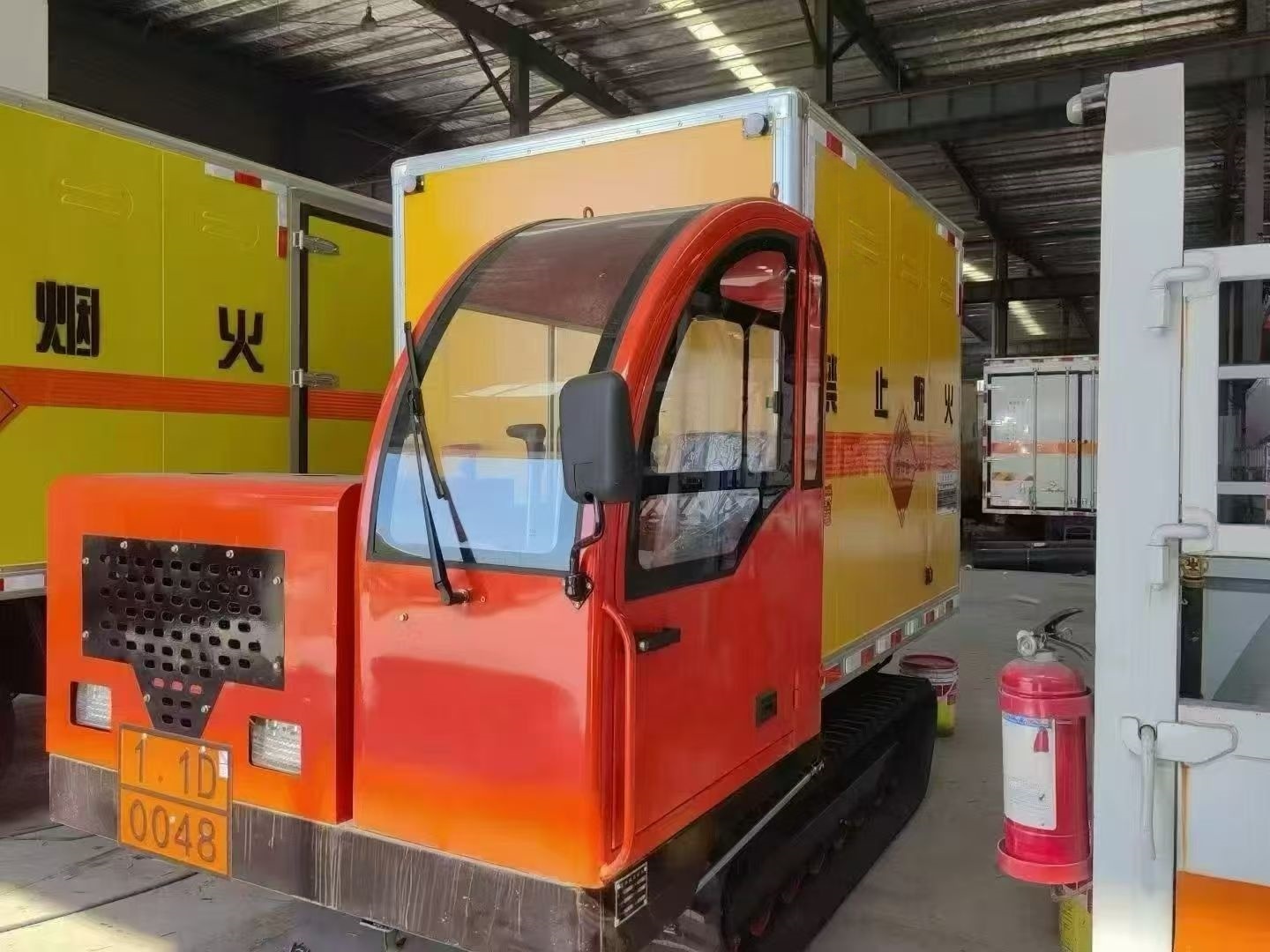 履帶式爆破器材運(yùn)輸車(chē)被稱為安全運(yùn)輸 “重器”在爆破工程物資運(yùn)輸場(chǎng)景中,履帶式爆破器材運(yùn)輸車(chē) 憑借硬核實(shí)力,成為安全高效運(yùn)輸?shù)?“黃金拍檔”。采用的履帶式底盤(pán)設(shè)計(jì),無(wú)視山地、泥濘、陡坡等復(fù)雜地形 ,無(wú)論礦區(qū)、野外作業(yè)區(qū),都能穩(wěn)如磐石、靈活穿梭,讓爆破器材運(yùn)輸不再受地形掣肘。車(chē)身嚴(yán)格遵循爆破器材運(yùn)輸標(biāo)準(zhǔn),廂體防火、防爆、防靜電,“禁止煙火” 警示時(shí)刻守護(hù);密封、防盜設(shè)計(jì)全方位保障,從源頭杜絕安全隱患,讓每一次運(yùn)輸都安心無(wú)憂。合理廂體空間規(guī)劃,適配各類爆破器材規(guī)范運(yùn)輸;動(dòng)力強(qiáng)勁且穩(wěn)定,運(yùn)輸效率拉滿,助力工程進(jìn)度 “一路狂飆”!