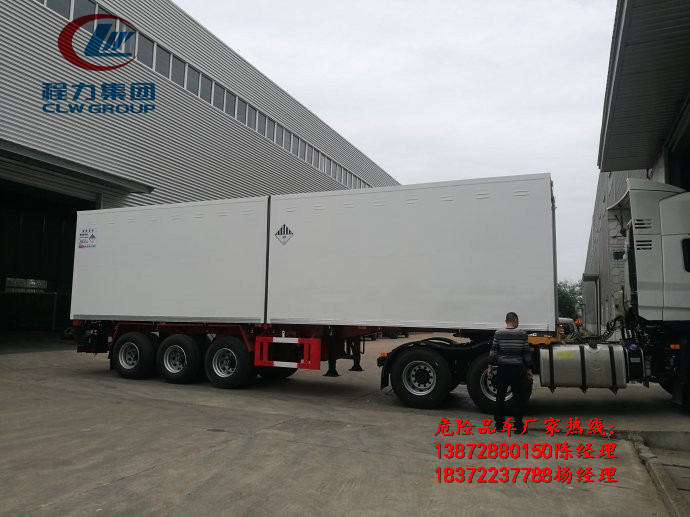 3臺柳汽小三軸9.6米貨廂雜項危貨車在十天內(nèi)加班加點(diǎn),保質(zhì)保量順利交付客戶!程力危化品廂式車專業(yè)廠家,專用生產(chǎn)各類1-9類危貨車!以下為出廠圖片: