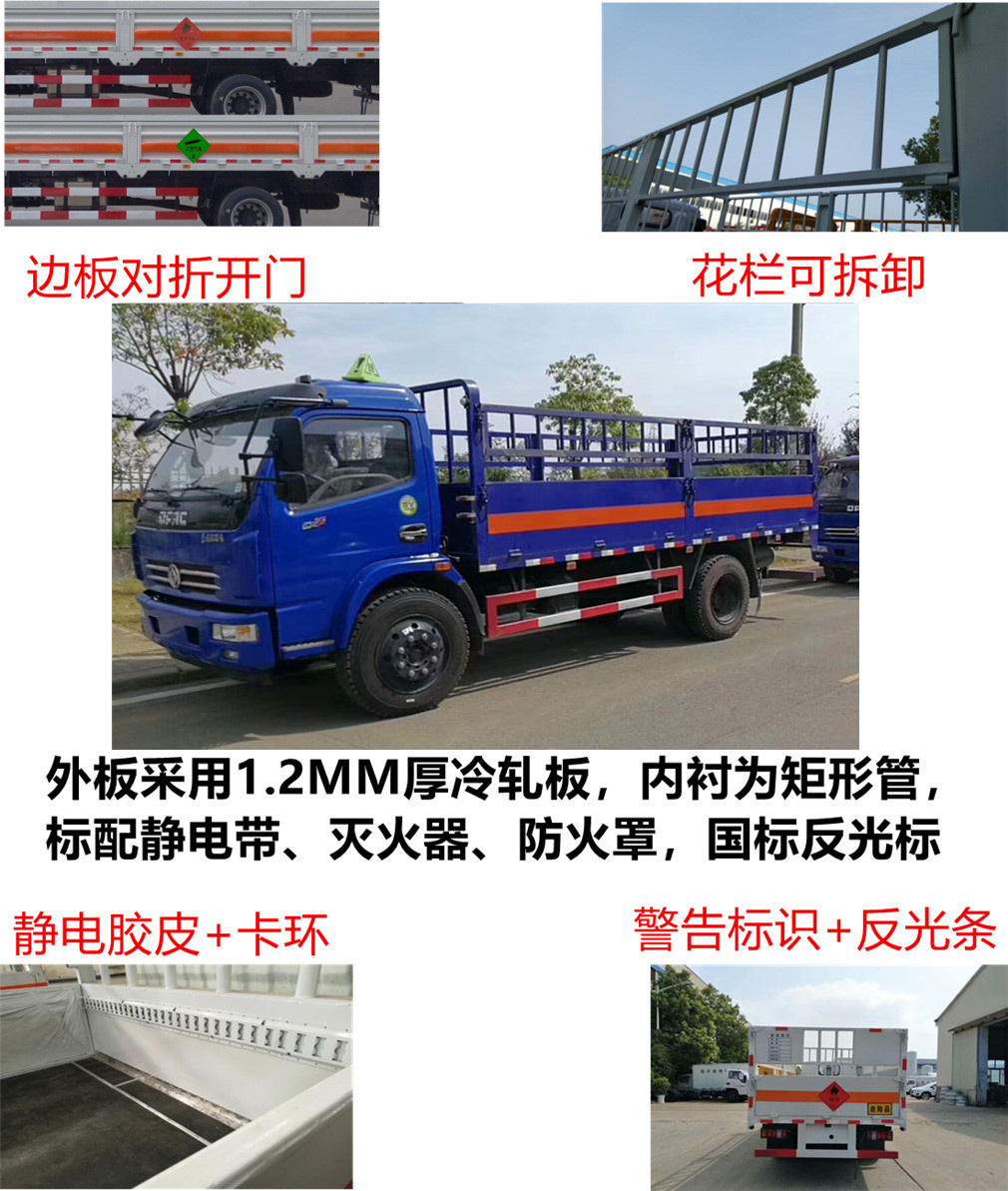 東風多利卡氣瓶運輸車,它是根據國家有關部委對易燃氣體鋼瓶運輸的規范和用戶的要求而研制生產,產品符合國防科工委關于《氣瓶運輸車安全技術條件》的要求.具有廂體強度高、防火阻燃、防止靜電火花等主要功能.專業運輸各類氣體介質瓶裝轉運,如:液化石油氣瓶運輸車、鋼瓶配送車、煤氣瓶轉運車、氧氣瓶、二氧化碳氣瓶等。