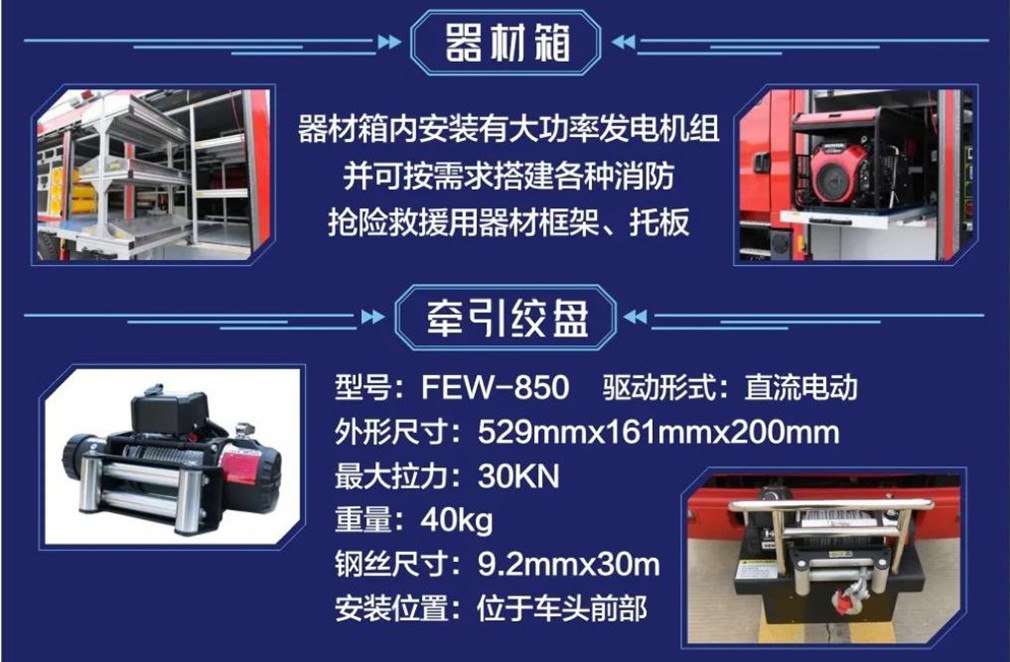 3.隨車配備高規格優質消防器材,方便應急救援的使用。