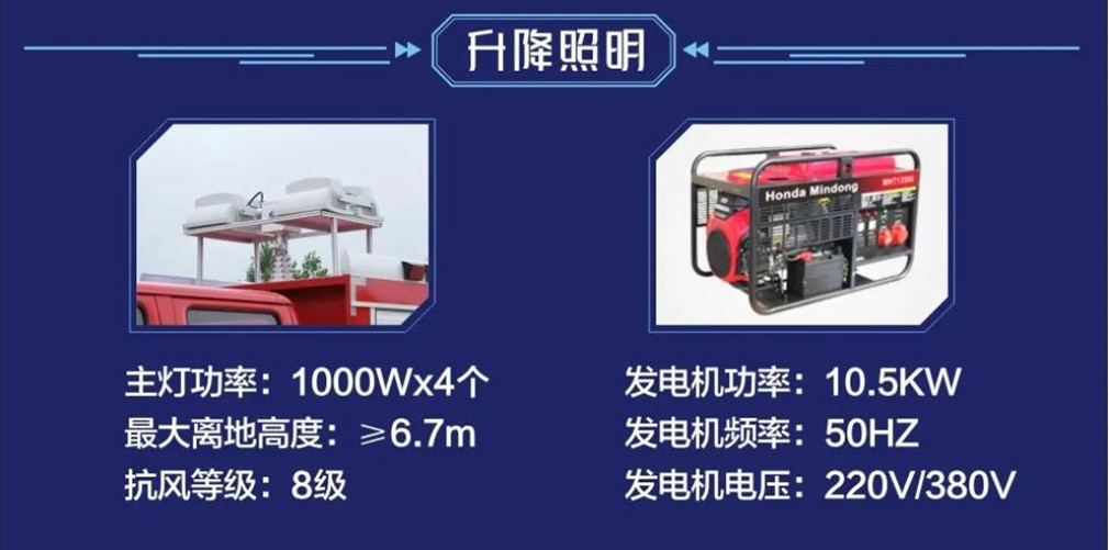 1.駕駛室頂部安裝長排消防警燈,并配備多種可調警報聲音,燈光閃爍強勁有力,警示效果好。