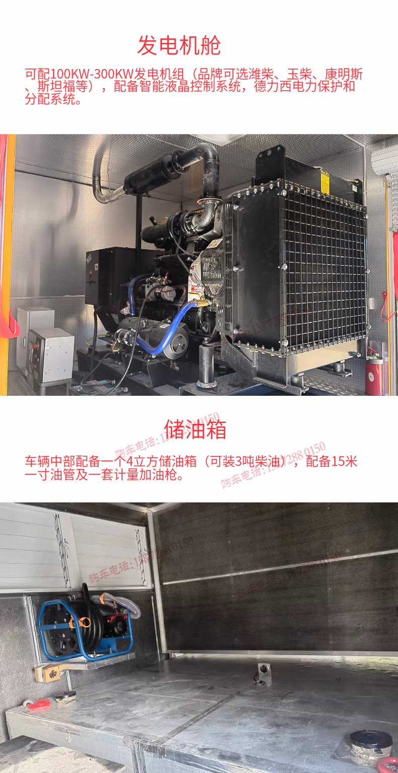 發電儲油車以成熟的二類底盤為載體,搭載高可靠穩定性和卓越使用性的的柴油發電機組,安裝于標準車廂改造成的具有高吸音效果、適合柴油發電機組運行的防音車廂內,組合成完美的車載電站,噪聲低、移動方便、速度快捷、性能可靠,可支持全天候的在野外環境下進行工作,為用戶實現遠距離的應急供電提供了可能,可最大限度地滿足客戶要求;可滿足車隊野外燃油需求。
